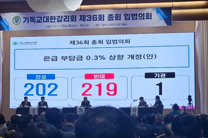 교계 안팎으로 관심을 모았던 '감독회장 4년 겸임제'는 찬성 132표, 반대 305표라는 큰 표 차이로 부결됐습니다.